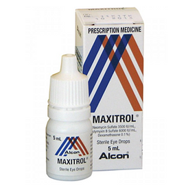 Maxitrol Eye Drops is a sterile eye drop that contains the active ingredients dexamethasone, neomycin and polymyxin B. Both neomycin and polymyxin B are antibiotic agents. Dexamethasone is a type of cortisone and belongs to the group of medicines called corticosteroids.