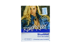 – 3 Premium Latex Condoms. Rough Rider condoms have hundreds of raised rubber studs for maximum sensation and pleasure. I