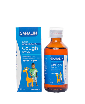 Samalin Junior Cough Syrup is for the symptomatic relief of coughs, colds and catarrh in children. It works by clearing mucous in the bronchial tubes. Suitable for children 6 years to 12 years.