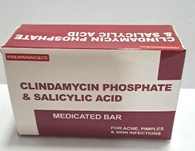Clindamycin Phosphate & Salicylic Acid Bar Soap is for the treatment of acne or pimples. Clindamycin Phosphate, an antibiotic works by penetrating into the skin and killing acne-causing bacteria. Salicylic Acid works by removing dead skin cells which clog pores and contribute to acne breakouts.
